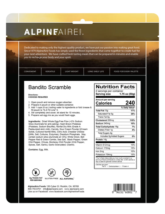 AlpineAire Al Pastor Pork w/Cilantro Lime Rice Freeze Dried Camping Food 60605