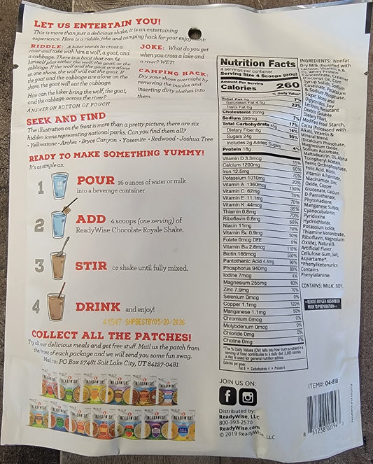 ReadyWise Chocolate Royale Shake 4 ServingsRegular price $10.21 USDRegular priceUnit price per-