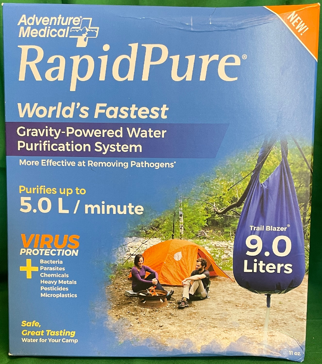 BRAND NEW Adventure Medical RapidPure Trail Blazer Gravity Water Purifier w/Bag, Hose, and Cartridge.