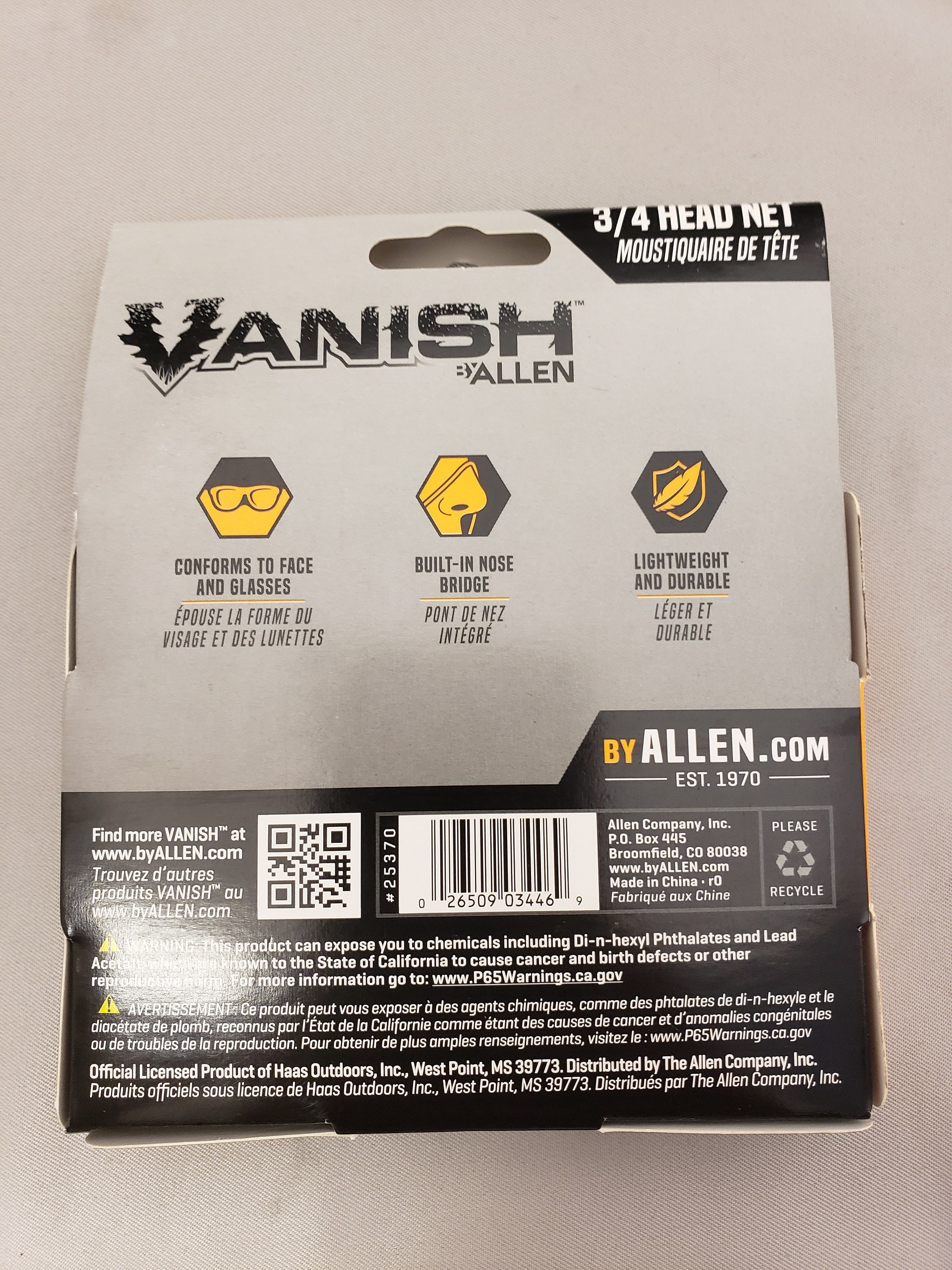 You will receive: 1 Allen Vanish 3/4 head net.