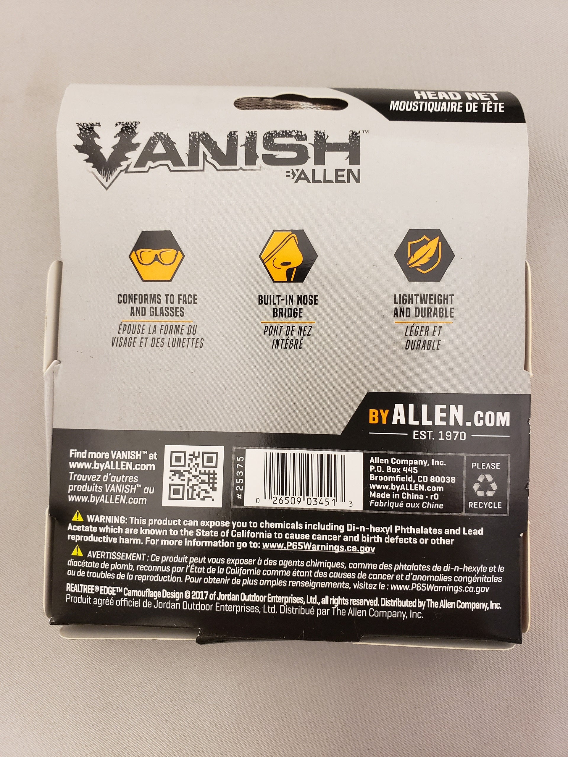 BRAND NEW Allen Vanish Visa Form Mesh Realtree Edge Full Face Head Net - Camo Hunting Headnet.