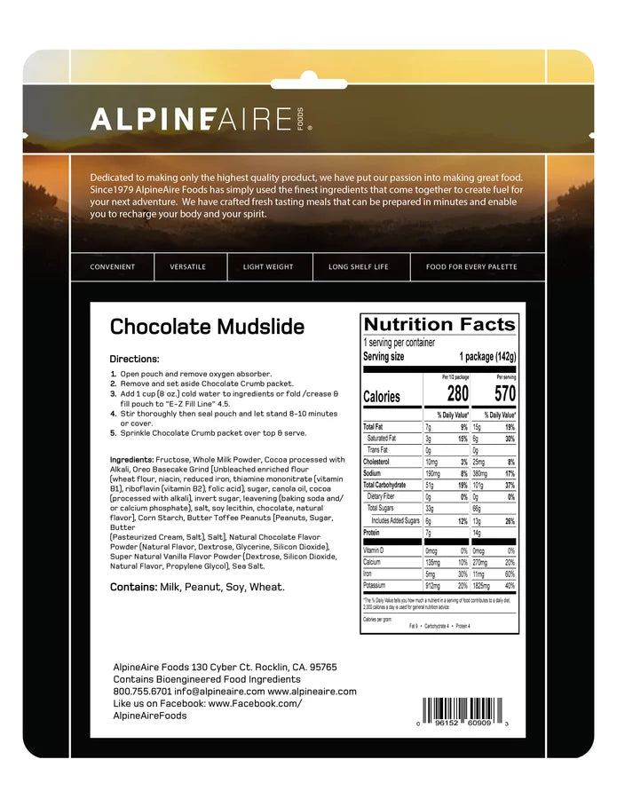 AlpineAire Chocolate Mudslide w/Toffee Peanuts Camping Food Pouch 60909.
