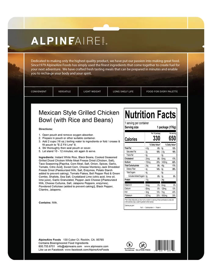 AlpineAire Mexican-Style Grilled Chicken Bowl Freeze Dried Camping Food 60335.