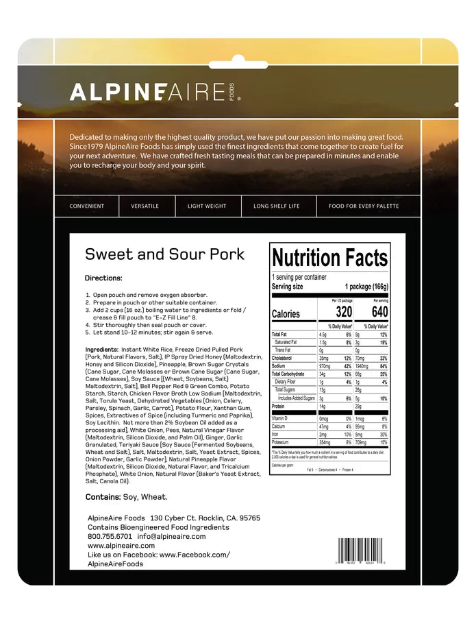 AlpineAire Asian Sweet & Sour Pork w/Rice Freeze Dried Camping Food Pouch 60610