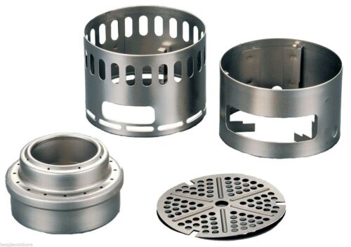 Evernew Titanium Ti Stove & DX Stand Set EBY255 Tri-Fuel Alcohol / Wood / Tablets.