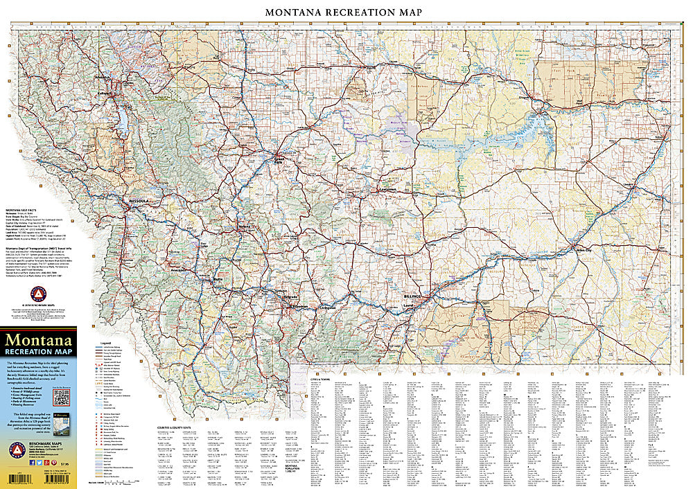 The Montana Recreation Map is the ideal planning tool for everything outdoors, from a rugged backcountry adventure to a nearby fishing spot. It's the only Montana folded map that benefits from Benchmark's field-checked accuracy, and cartographic excellence. Includes: extensive highway detail and recreation overlay, over 100 campground listings, forest and wildlife areas, boating and fishing, and complete information resources.