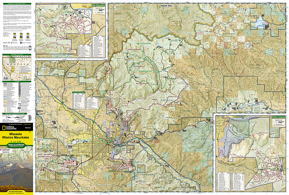 This NationalGeographicTrails Illustrated map of Missoula and the Mission Mountains in Montana is designed to meet the needs of outdoor enthusiasts with unmatched durability and detail. Expertly researched and created in partnership with local land management agencies, this map features key points of interest including Rattlesnake Wilderness and National Recreation Area, Mission Mountains Wilderness and Mission Mountains Tribal Wilderness, Seeley Lake, Placid Lake State Park, and Marshall Creek Wildlife and Management Area, along with insets for Pattee Canyon and the Blue Mountain Recreation Area trail networks. This uniquely detailed map also provides clearly marked mountain bike and snowmobile trails along with public fishing access locations.