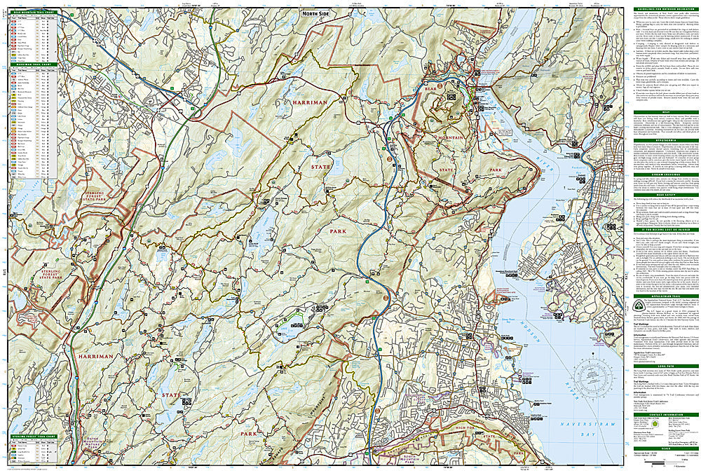 National Geographic's recreational map of Harriman/Bear Mountain/Sterling Forest State Parks is a two-sided, waterproof map designed to meet the needs of outdoor enthusiasts with unmatched durability and detail. Loaded with valuable safety tips, guidelines for outdoor recreation, park contact information and more, the map also includes a UTM and Latitude/Longitude grid, as well as selected waypoints and a scale bar for easy and accurate navigation.