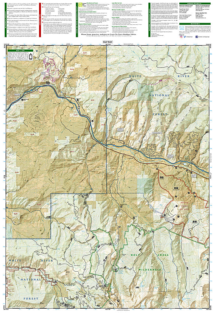 TheEagle / AvonTrails Illustrated map is the most comprehensive recreational map for this beautiful area of Colorado.Coverage includes the White River National Forest, Bull Gulch Wilderness Area, and Holy Cross Wilderness. Also included are the cities of Eagle, Gypsum, Avon, Wolcott and Fulford, as well as Eagle River; Beaver and Squaw creeks; and Hardscrabble Mountain. Ski areas: Beaver Creek and Arrowhead. 10th Mountain Huts: Polar Star Inn. Includes UTM grids for use with your GPS unit.
