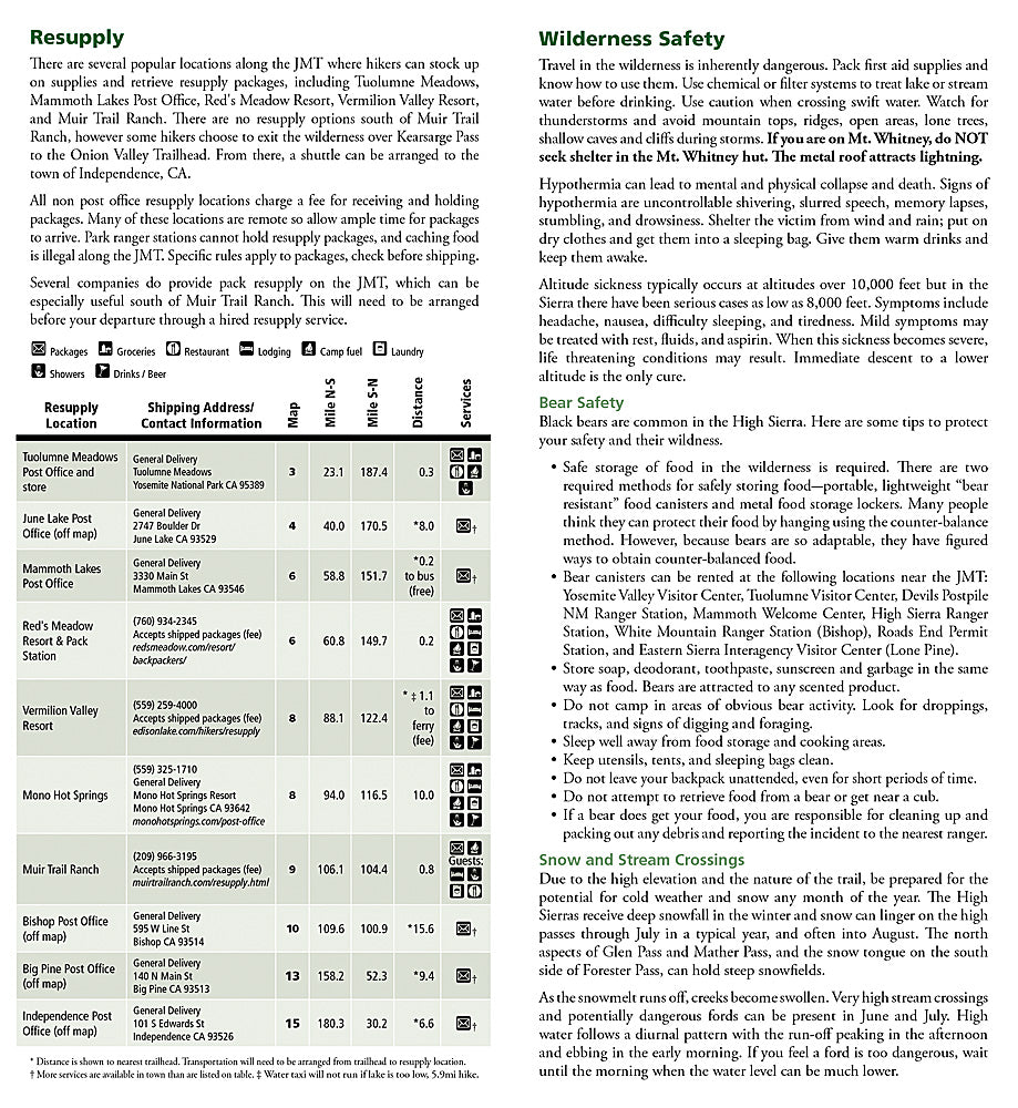 Each map page has a trail profile that shows the elevation changes you will encounter. Also, the John Muir Trail is highlighted and centered on each page so you can easily track your progress. The maps start at the northern terminus in Yosemite Valley and progress along the ridge of the Sierra Nevada, past Devils Postpile, and end at the highest point in the lower 48 on the top of Mount Whitney. Along the way you will pass through; Yosemite National Park, Ansel Adams Wilderness, Devils Postpile National Monument, John Muir Wilderness, Kings Canyon National Park, and finally, Sequoia National Park and Mount Whitney.