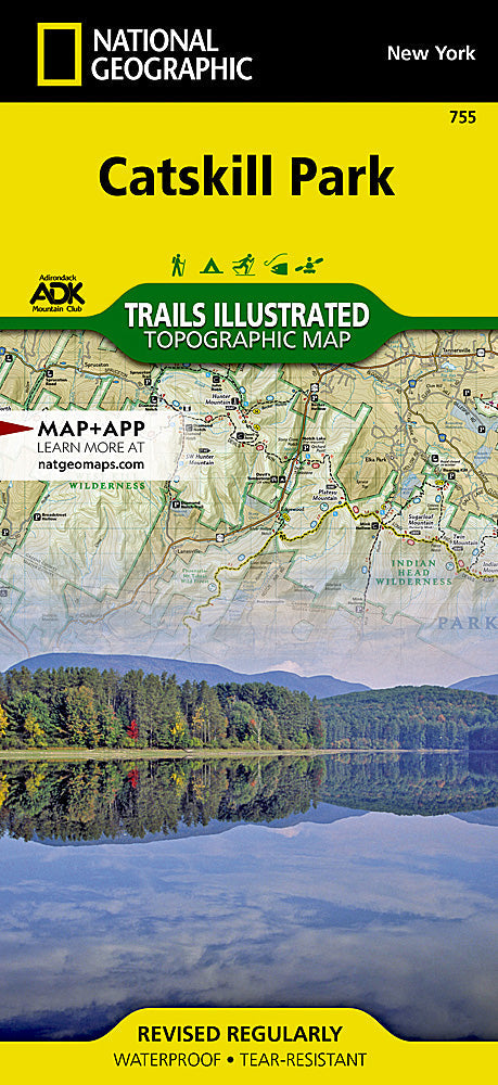 National Geographic's recreational map of Catskill Park is a two-sided, waterproof map designed to meet the needs of outdoor enthusiasts with unmatched durability and detail. This map was created in partnership with the Adirondack Mountain Club (ADK) which provided trail information from its Forest Preserve Series of trail guides. Loaded with valuable information about recreating in the park, the map also includes a UTM and Latitude/Longitude grid, as well as selected waypoints and a scale bar for easy and accurate navigation.