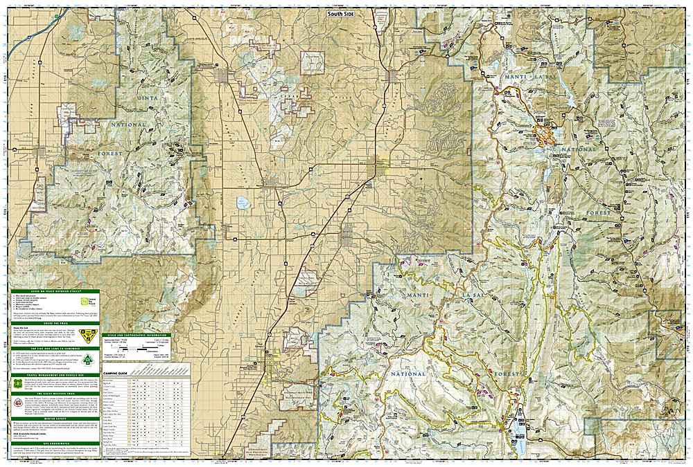 Coverage includes Uinta National Forest, Mt. Nebo, Lone Peak and Mt. Timpanogos Wildernesses; Granite, American Fork, Orem; Little Cottonwood Canyon, Santaquin, Devils Kitchen; Deer Creek and Silver Lake Flat reservoirs and Little Provo River. Includes UTM tick marks for use with your GPS unit.