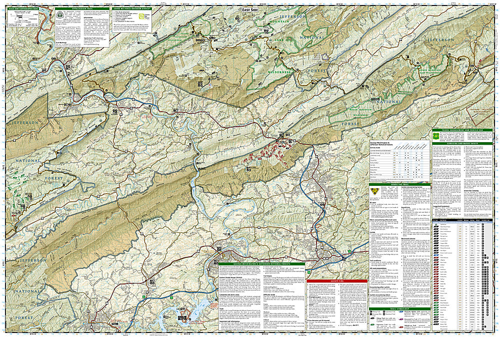 This Trails Illustrated topographic map is the most comprehensive recreational map for the Blacksburg/New River Valley area of Virginia. Includes UTM tick marks for use with your GPS unit and a trail mileage matrix. Coverage includes: Jefferson National Forest; Blacksburg; Radford; Pulaski; Bluefield; Wytheville; Appalachian National Scenic Trail. Wilderness areas include: Beartown; Kimberling Creek; Peters Mountain; Mountain Lake.