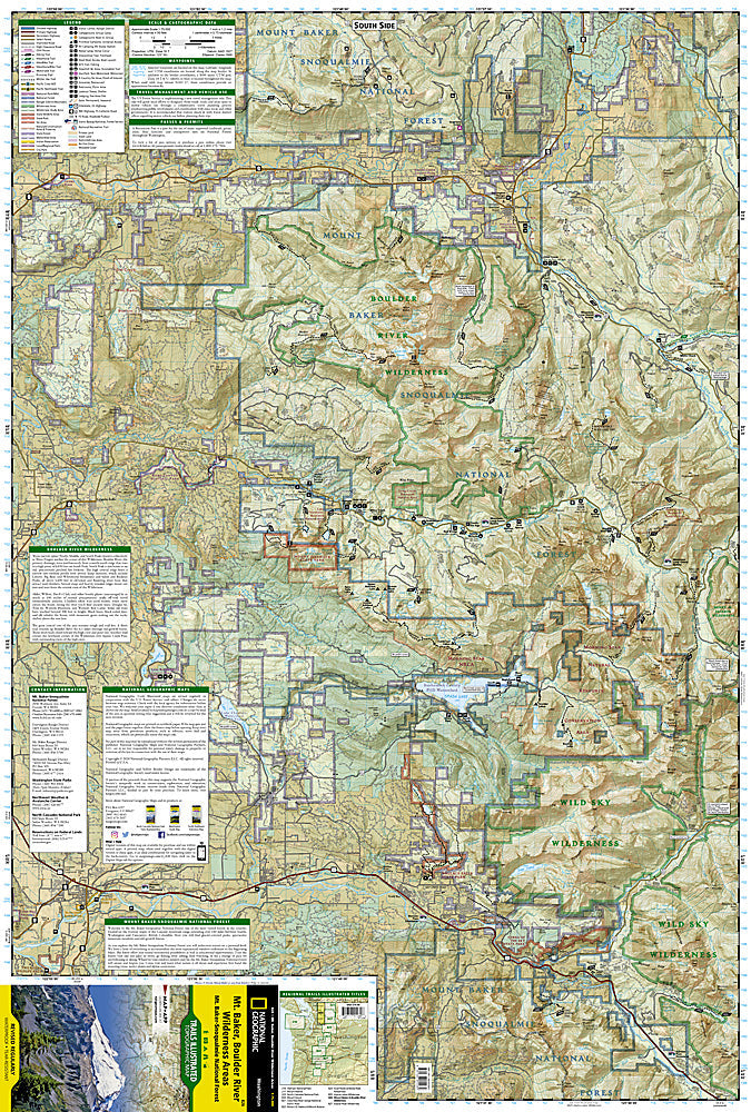 Coverage includes: Noisy Diobsud Wilderness Area, Mount Baker National Recreation Area, Skagit Wild and Scenic River, Mount Baker, Mountain Loop and North Cascades Scenic Byways.