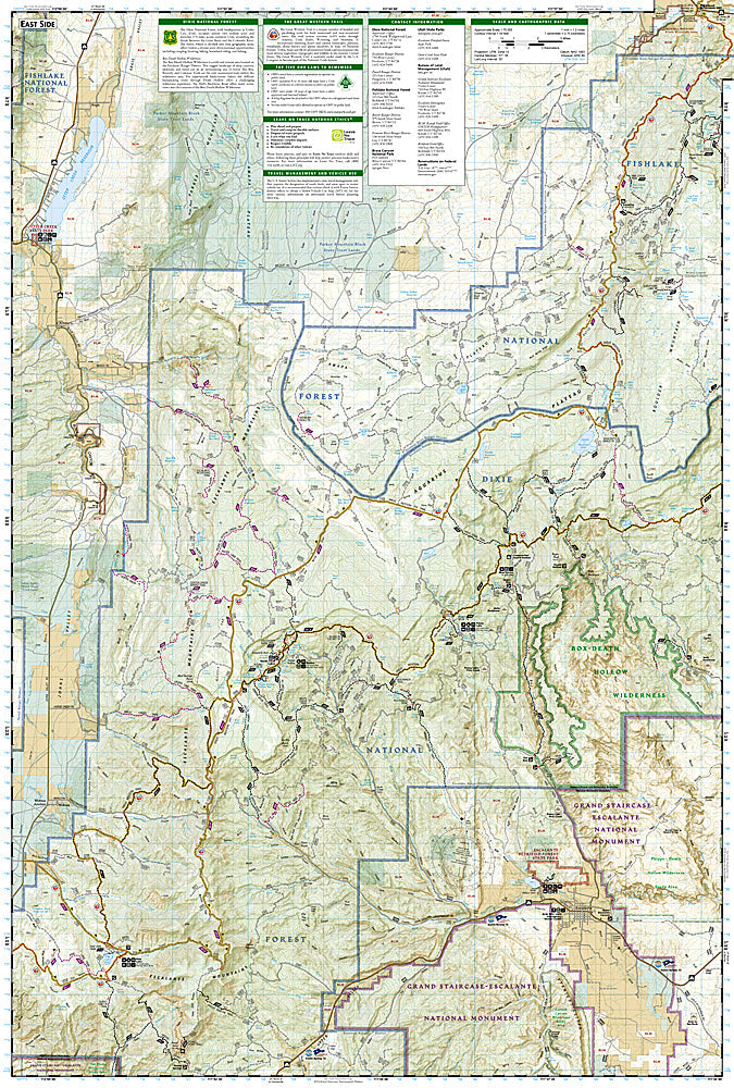 This Trails Illustrated topographic map is the most comprehensive and complete recreational map for Utah's Paunsaugunt Plateau/Mount Dutton/Bryce Canyon area. Coverage includes Dixie National Forest. Bryce Canyon National Park; Paunsaugunt Plateau; Red Canyon, Sunset and Pink Cliffs, Johns Valley, Casto Canyon, Swallow Park Ranch, Sevier Plateau and Pole Canyon; Tropic Reservoir, Cottonwood Creek and Sevier Creek.