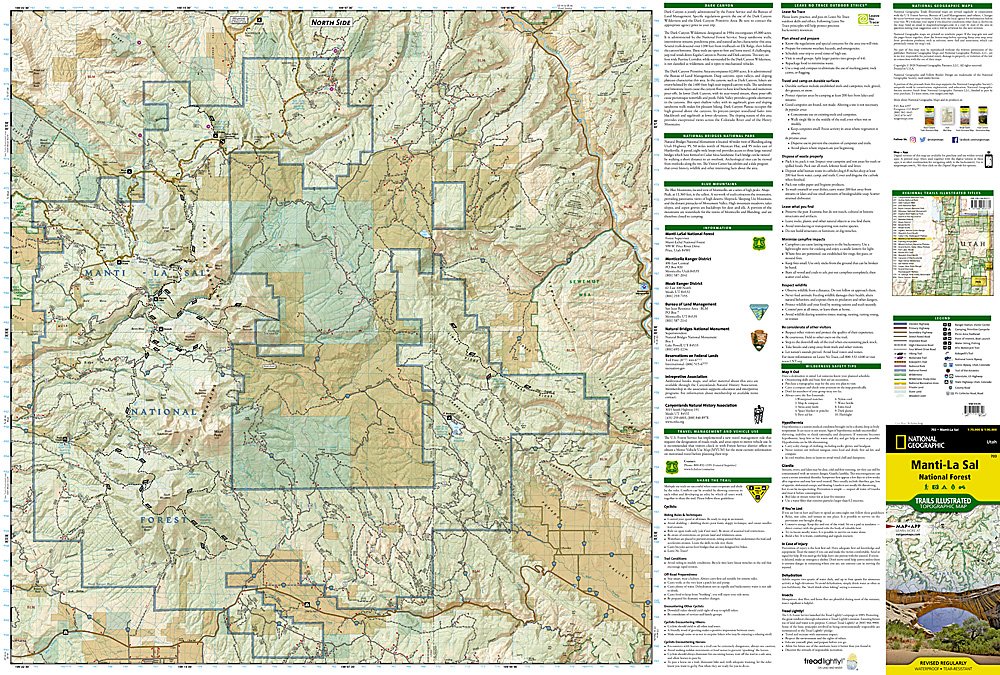 This Trails Illustrated topographic map is the most comprehensive recreational map for Utah's Manti-La-Sal National Forest area. Coverage includes: Manti-La-Sal National Forest; Dark Canyon Wilderness/Primitive Area; Natural Bridges, New Mexico; Monticello, Blanding, Fry Canyon, Blue Mountains, Woodenshoe and Hammond canyons; Indian Creek and Recapture Lake.