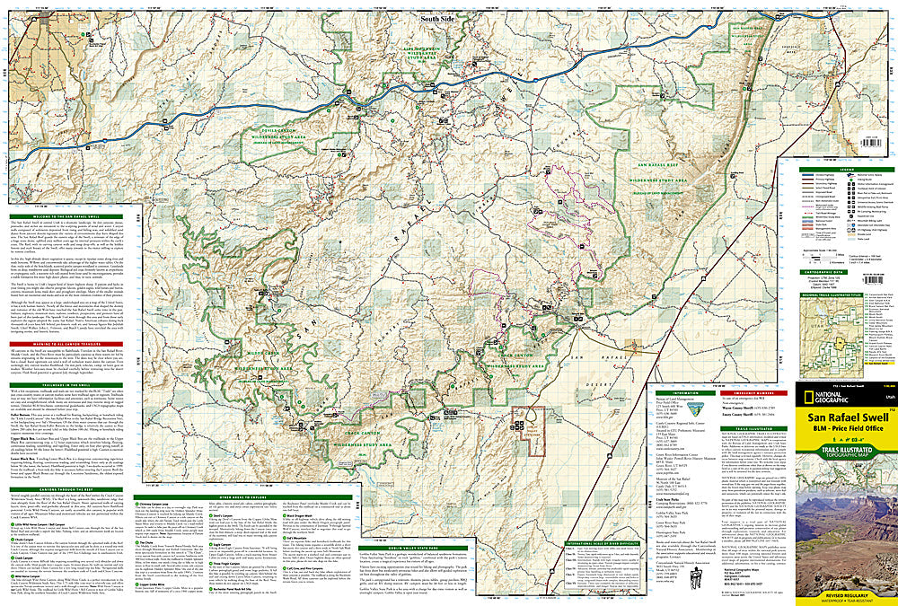 This Trails Illustrated topographic map is the most comprehensive and complete recreational map for Utah's San Rafael Swell area. Coverage includes: San Rafael Reef; Green River; Huntington; Castle Dale; Muddy Creek and San Rafael River; Upper and Lower Black Box; the Chute; Cedar Mountain; the Wedge; Sids Mountain Wilderness. Study Areas: San Rafael Reef; Crack Canyon; Muddy Creek; Devils Canyon; Sids Mountain; Mexican Mountain; Goblin Valley State Park; Cleveland-Lloyd Dinosaur Quarry.